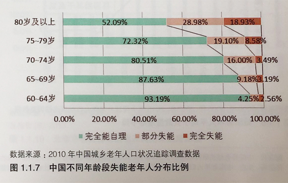 隨著老年人的年(nián)齡的增長,失(shī)能比例顯(xiǎn)著上升。我國(guó)80歲及以上高(gāo)齡老人中,近一半為部(bù)分失能或完全失(shī)能老人。