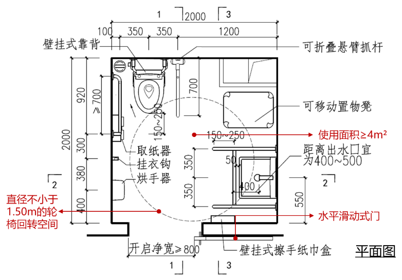 衛生間無障礙設計應首先滿足基本的使用功能需求,各功能空間的設計要求如下。