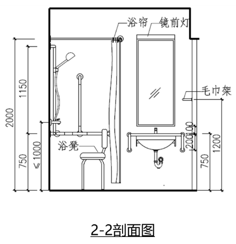 應設置至少一個無障礙淋浴間或盆浴間和1個無障礙洗手盆(pén);