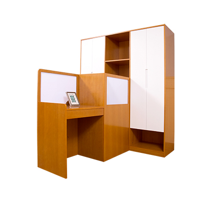 基材:麵板厚度18mm;采用國家E1級三胺(àn)板(實木/科技(jì)木(mù)可(kě)選),三聚氰胺板具有一定的阻燃性,一定的防火功能(néng),其貼麵是裝飾紙由三聚氰胺膠黏(nián)劑浸泡之後,再幹(gàn)燥的,與(yǔ)基材熱壓製成了三聚氰胺板。三聚氰胺(àn)板的硬度大,耐(nài)磨(mó),耐熱(rè)性好、也能抵抗一般的(de)酸堿酒精,邊角處采用倒圓工藝,板材的封邊,優質工藝的封(fēng)邊細(xì)膩、光滑(huá)、手感好,封線平直光滑,接頭精細。專(zhuān)業廠用(yòng)直線封邊機器一次完成工序,塗膠均勻,壓力穩定;
